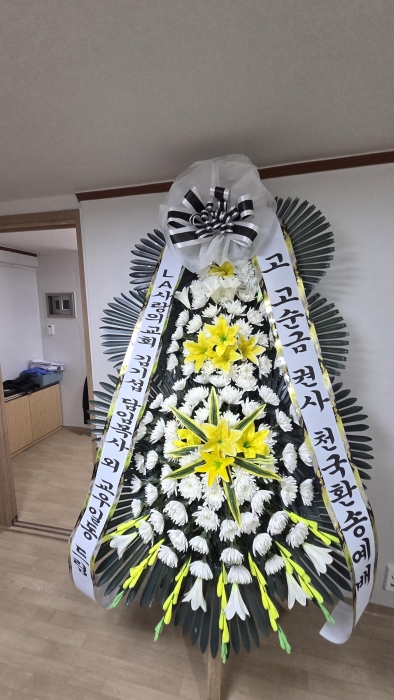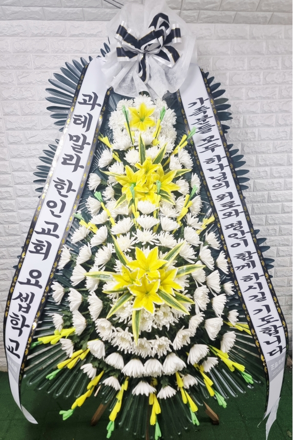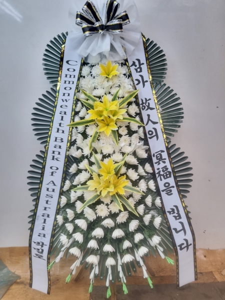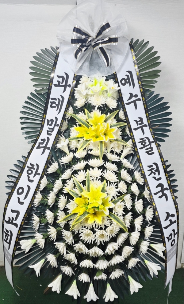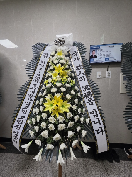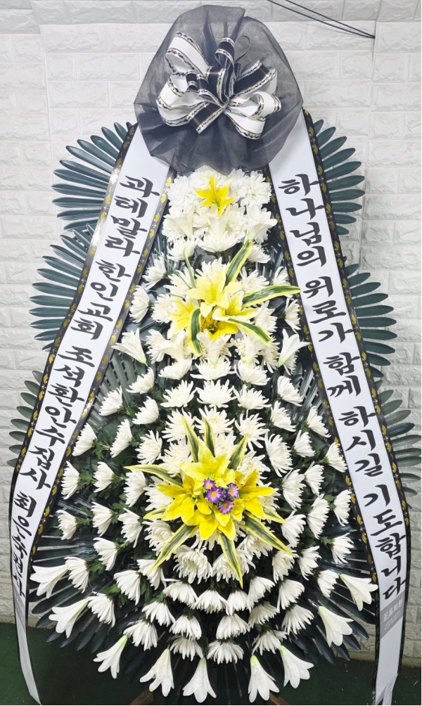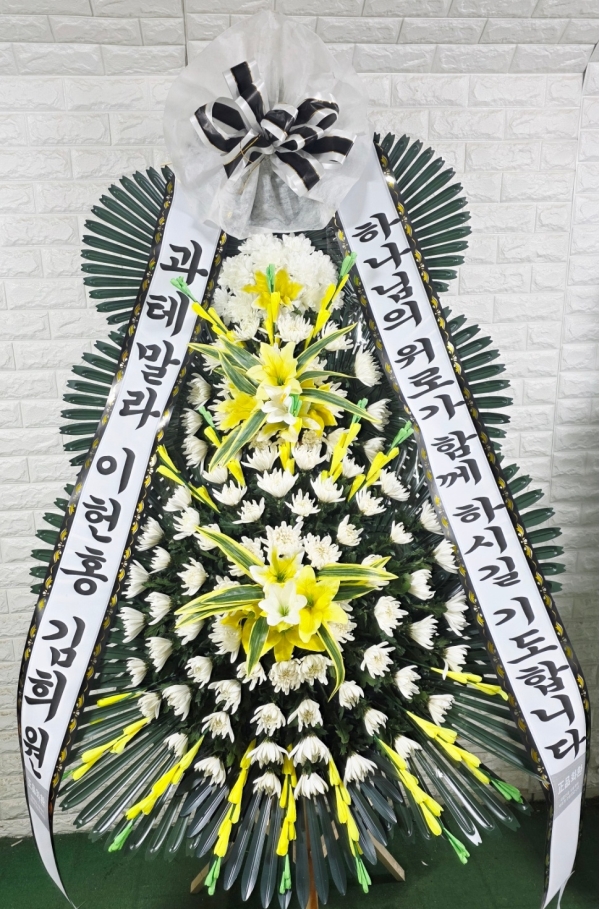근조3단화환은 근조화환중에서 제일 키가 큽니다. 돌아가신 고인의 명복을 빌며 정성이 담긴 근조3단화환을 보내세요.국화,백합등과 같은 근조화환제작용 계절꽃이 더욱 풍성하게 꽂힙니다